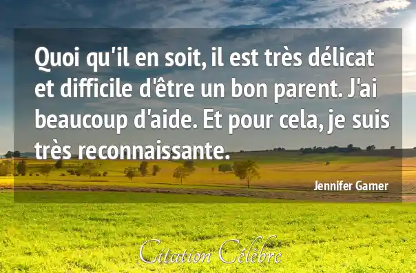 Quoi qu'il en soit, il est très délicat et difficile d'être un bon parent. J'ai beaucoup d'aide. Et pour cela, je suis très reconnaissante.