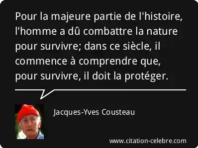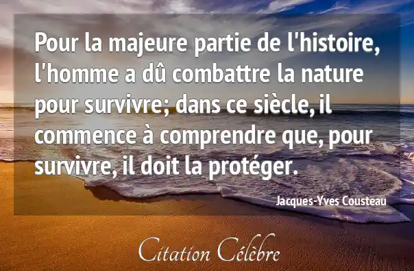 Pour la majeure partie de l'histoire, l'homme a dû combattre la nature pour survivre; dans ce siècle, il commence à comprendre que, pour survivre, il doit la protéger.