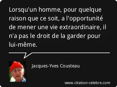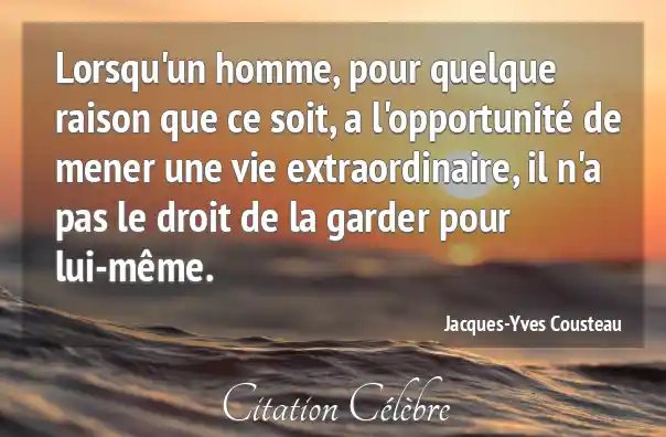 Lorsqu'un homme, pour quelque raison que ce soit, a l'opportunité de mener une vie extraordinaire, il n'a pas le droit de la garder pour lui-même.
