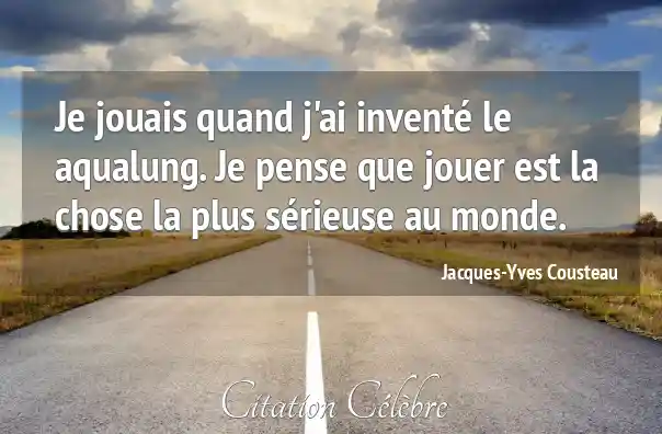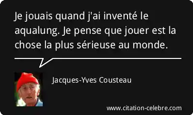 Je jouais quand j'ai inventé le aqualung. Je pense que jouer est la chose la plus sérieuse au monde.