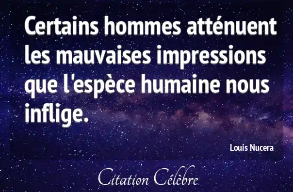 Certains hommes atténuent les mauvaises impressions que l'espèce humaine nous inflige.