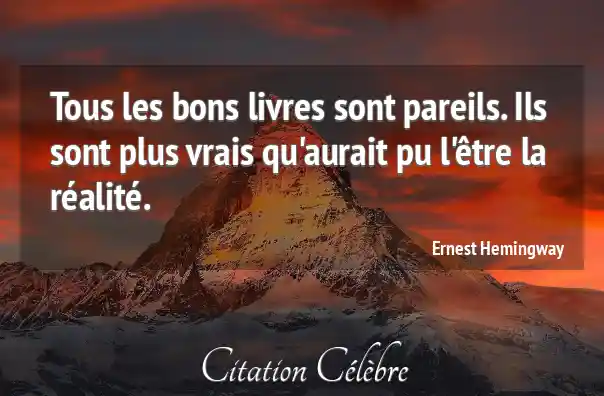 Tous les bons livres sont pareils. Ils sont plus vrais qu'aurait pu l'être la réalité.
