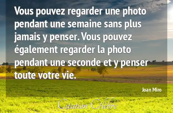 Vous pouvez regarder une photo pendant une semaine sans plus jamais y penser. Vous pouvez également regarder la photo pendant une seconde et y penser toute votre vie.
