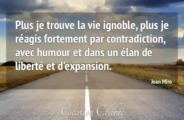 Plus je trouve la vie ignoble, plus je réagis fortement par contradiction, avec humour et dans un élan de liberté et d'expansion.