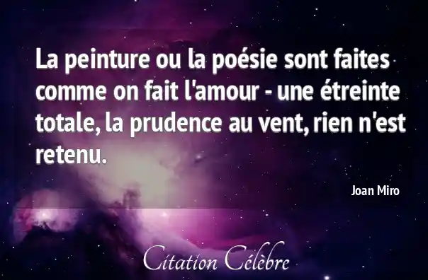 La peinture ou la poésie sont faites comme on fait l'amour - une étreinte totale, la prudence au vent, rien n'est retenu.