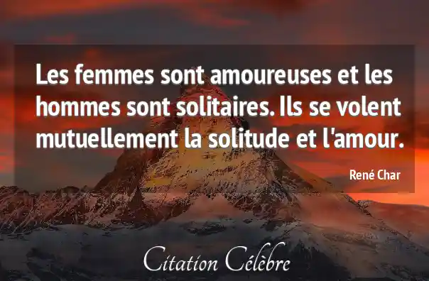 Les femmes sont amoureuses et les hommes sont solitaires. Ils se volent mutuellement la solitude et l'amour.