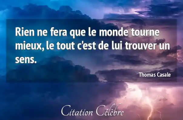 Rien ne fera que le monde tourne mieux, le tout c'est de lui trouver un sens.