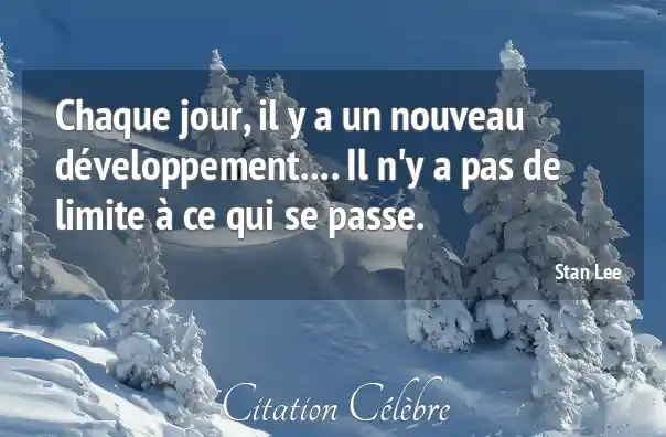 Chaque jour, il y a un nouveau développement.... Il n'y a pas de limite à ce qui se passe.