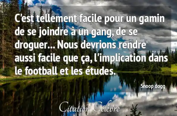 C'est tellement facile pour un gamin de se joindre à un gang, de se droguer... Nous devrions rendre aussi facile que ça, l'implication dans le football et les études.