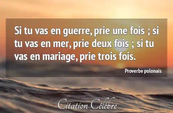 Si tu vas en guerre, prie une fois ; si tu vas en mer, prie deux fois ; si tu vas en mariage, prie trois fois.