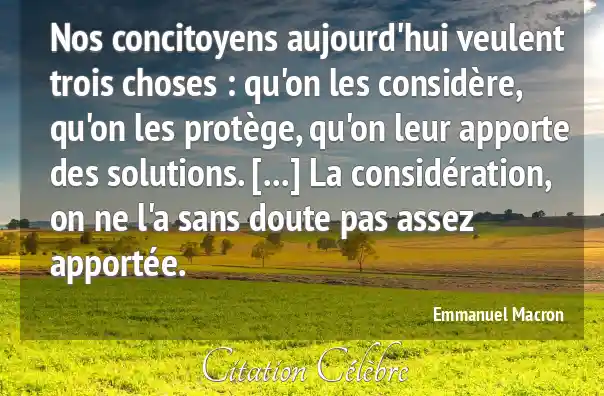 Nos concitoyens aujourd'hui veulent trois choses : qu'on les considère, qu'on les protège, qu'on leur apporte des solutions. [...] La considération, on ne l'a sans doute pas assez apportée.