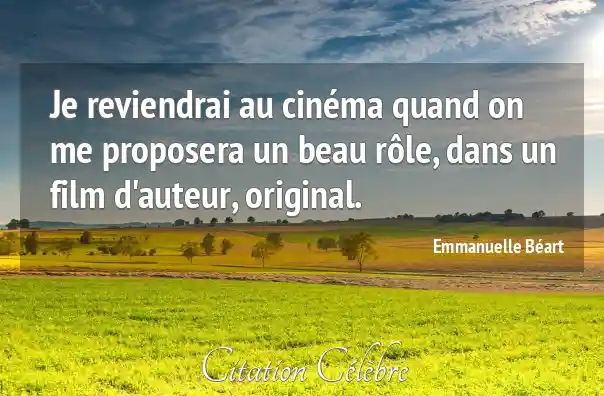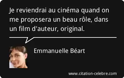 Je reviendrai au cinéma quand on me proposera un beau rôle, dans un film d'auteur, original.