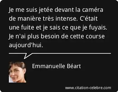 Je me suis jetée devant la caméra de manière très intense. C'était une fuite et je sais ce que je fuyais. Je n'ai plus besoin de cette course aujourd'hui.