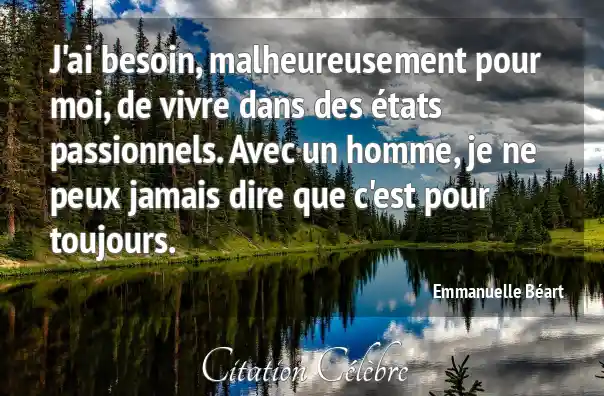 J'ai besoin, malheureusement pour moi, de vivre dans des états passionnels. Avec un homme, je ne peux jamais dire que c'est pour toujours.
