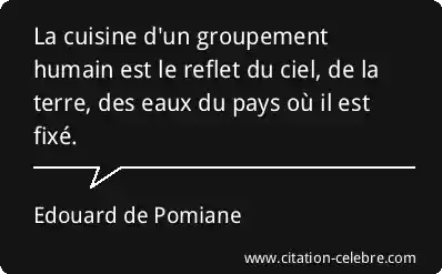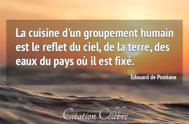 La cuisine d'un groupement humain est le reflet du ciel, de la terre, des eaux du pays où il est fixé.