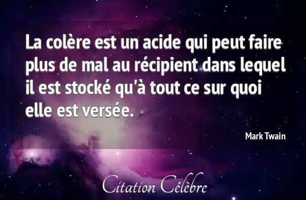 La colère est un acide qui peut faire plus de mal au récipient dans lequel il est stocké qu'à tout ce sur quoi elle est versée.
