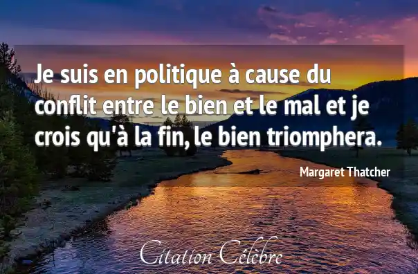 Je suis en politique à cause du conflit entre le bien et le mal et je crois qu'à la fin, le bien triomphera.