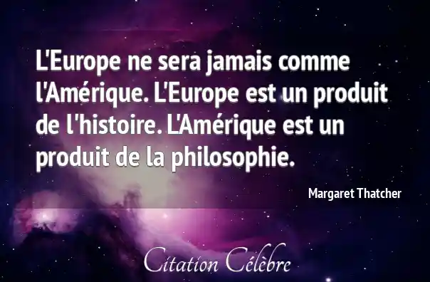 L'Europe ne sera jamais comme l'Amérique. L'Europe est un produit de l'histoire. L'Amérique est un produit de la philosophie.