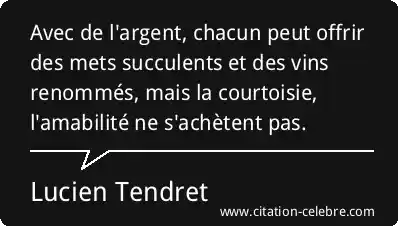 Avec de l'argent, chacun peut offrir des mets succulents et des vins renommés, mais la courtoisie, l'amabilité ne s'achètent pas.