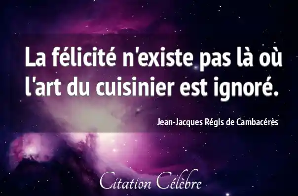 La félicité n'existe pas là où l'art du cuisinier est ignoré.