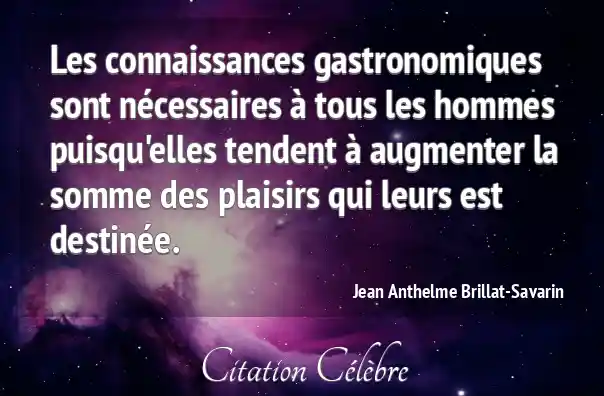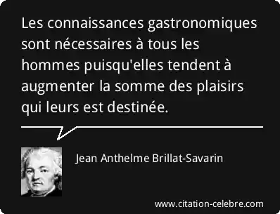 Les connaissances gastronomiques sont nécessaires à tous les hommes puisqu'elles tendent à augmenter la somme des plaisirs qui leurs est destinée.