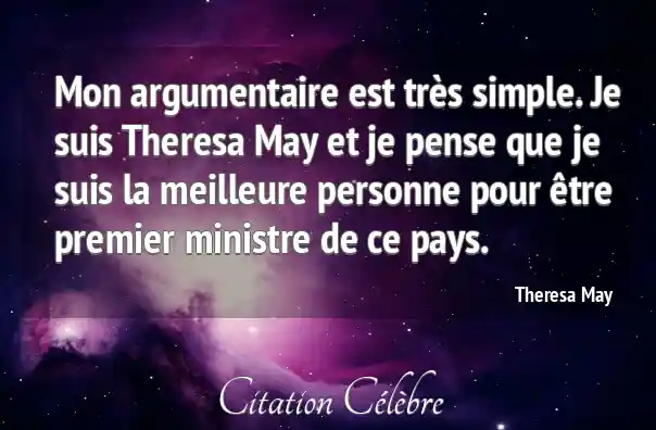Mon argumentaire est très simple. Je suis Theresa May et je pense que je suis la meilleure personne pour être premier ministre de ce pays.