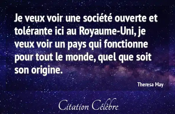 Je veux voir une société ouverte et tolérante ici au Royaume-Uni, je veux voir un pays qui fonctionne pour tout le monde, quel que soit son origine.