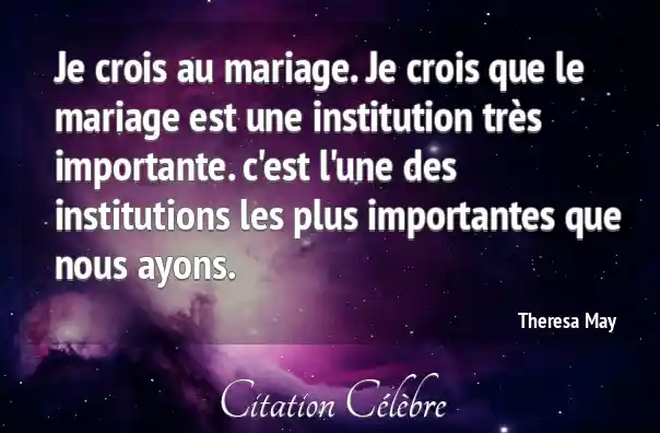 Je crois au mariage. Je crois que le mariage est une institution très importante. c'est l'une des institutions les plus importantes que nous ayons.