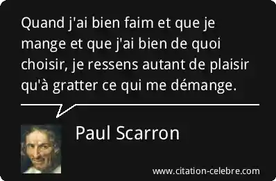 Quand j'ai bien faim et que je mange et que j'ai bien de quoi choisir, je ressens autant de plaisir qu'à gratter ce qui me démange.