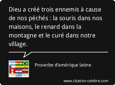 Dieu a créé trois ennemis à cause de nos péchés : la souris dans nos maisons, le renard dans la montagne et le curé dans notre village.