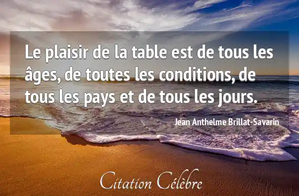 Le plaisir de la table est de tous les âges, de toutes les conditions, de tous les pays et de tous les jours.