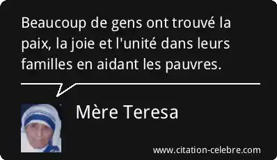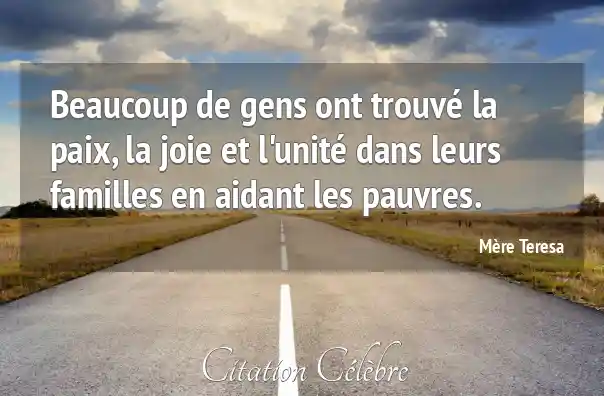Beaucoup de gens ont trouvé la paix, la joie et l'unité dans leurs familles en aidant les pauvres.
