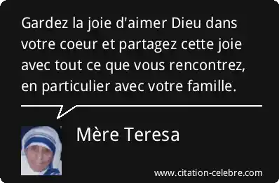 Gardez la joie d'aimer Dieu dans votre coeur et partagez cette joie avec tout ce que vous rencontrez, en particulier avec votre famille.