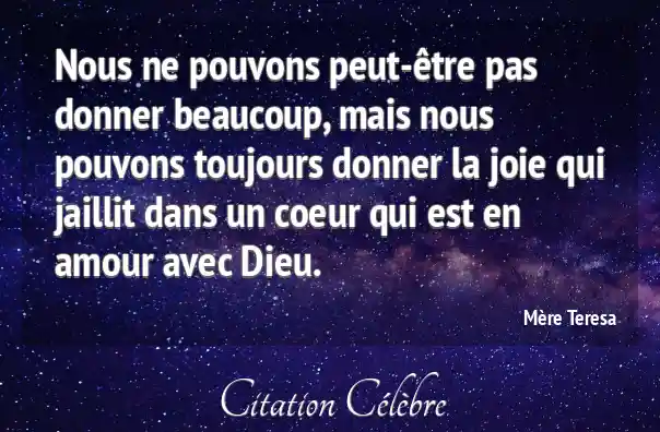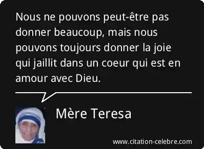 Nous ne pouvons peut-être pas donner beaucoup, mais nous pouvons toujours donner la joie qui jaillit dans un coeur qui est en amour avec Dieu.