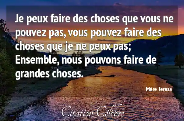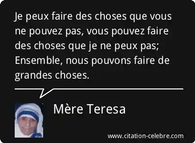 Je peux faire des choses que vous ne pouvez pas, vous pouvez faire des choses que je ne peux pas; Ensemble, nous pouvons faire de grandes choses.
