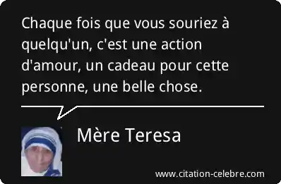 Chaque fois que vous souriez à quelqu'un, c'est une action d'amour, un cadeau pour cette personne, une belle chose.