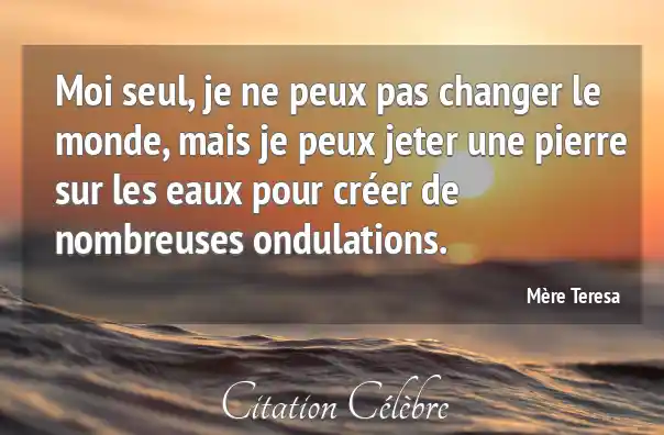 Moi seul, je ne peux pas changer le monde, mais je peux jeter une pierre sur les eaux pour créer de nombreuses ondulations.