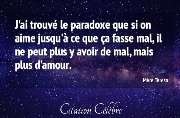 J'ai trouvé le paradoxe que si on aime jusqu'à ce que ça fasse mal, il ne peut plus y avoir de mal, mais plus d'amour.