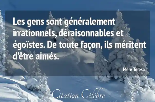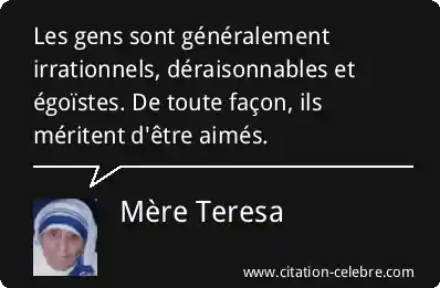 Les gens sont généralement irrationnels, déraisonnables et égoïstes. De toute façon, ils méritent d'être aimés.