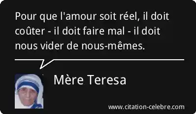 Pour que l'amour soit réel, il doit coûter - il doit faire mal - il doit nous vider de nous-mêmes.