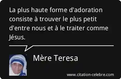 La plus haute forme d'adoration consiste à trouver le plus petit d'entre nous et à le traiter comme Jésus.