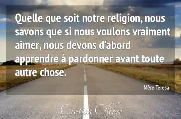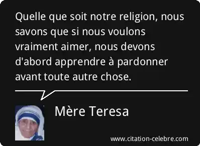Quelle que soit notre religion, nous savons que si nous voulons vraiment aimer, nous devons d'abord apprendre à pardonner avant toute autre chose.