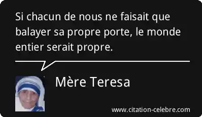 Si chacun de nous ne faisait que balayer sa propre porte, le monde entier serait propre.