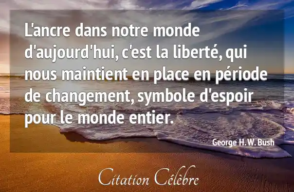 L'ancre dans notre monde d'aujourd'hui, c'est la liberté, qui nous maintient en place en période de changement, symbole d'espoir pour le monde entier.