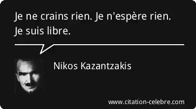 Je ne crains rien. Je n'espère rien. Je suis libre.