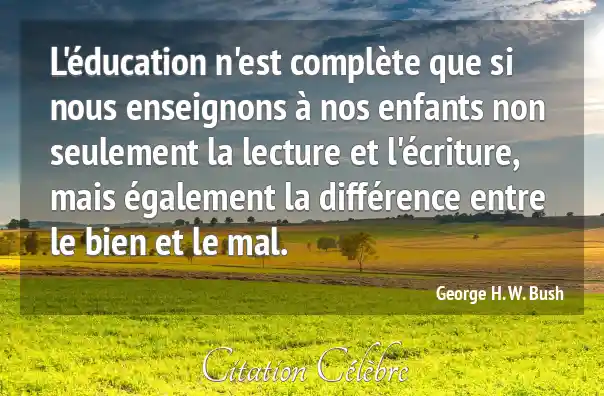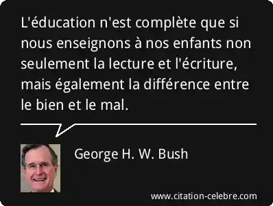 L'éducation n'est complète que si nous enseignons à nos enfants non seulement la lecture et l'écriture, mais également la différence entre le bien et le mal.