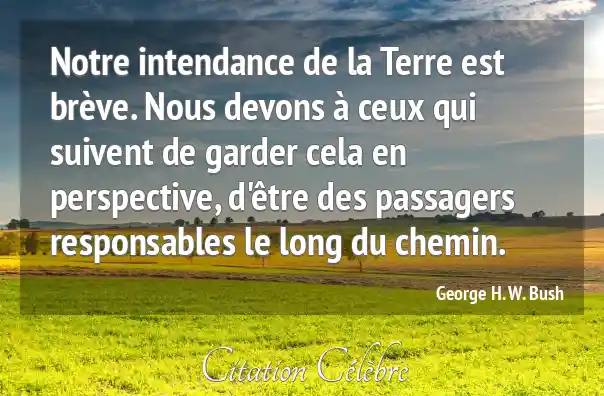 Notre intendance de la Terre est brève. Nous devons à ceux qui suivent de garder cela en perspective, d'être des passagers responsables le long du chemin.