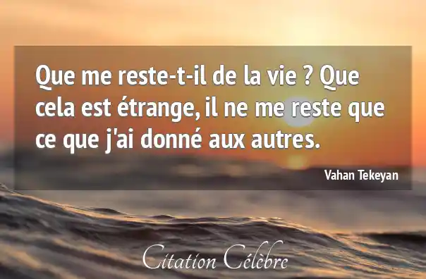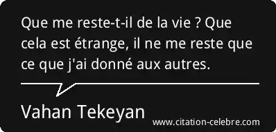Que me reste-t-il de la vie ? Que cela est étrange, il ne me reste que ce que j'ai donné aux autres.