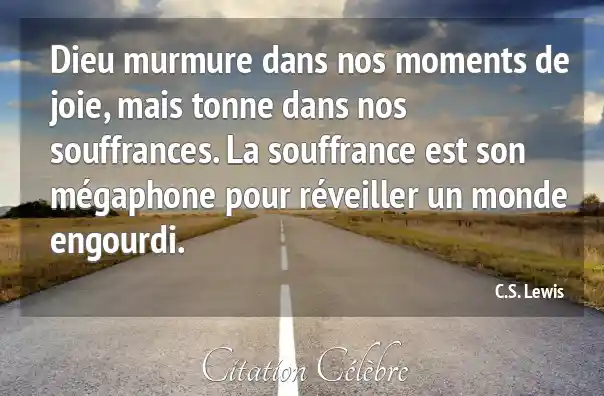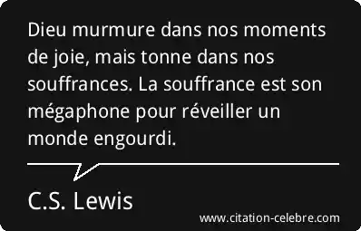 Dieu murmure dans nos moments de joie, mais tonne dans nos souffrances. La souffrance est son mégaphone pour réveiller un monde engourdi.