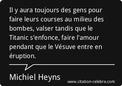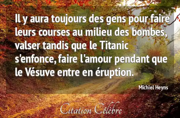 Il y aura toujours des gens pour faire leurs courses au milieu des bombes, valser tandis que le Titanic s'enfonce, faire l'amour pendant que le Vésuve entre en éruption.